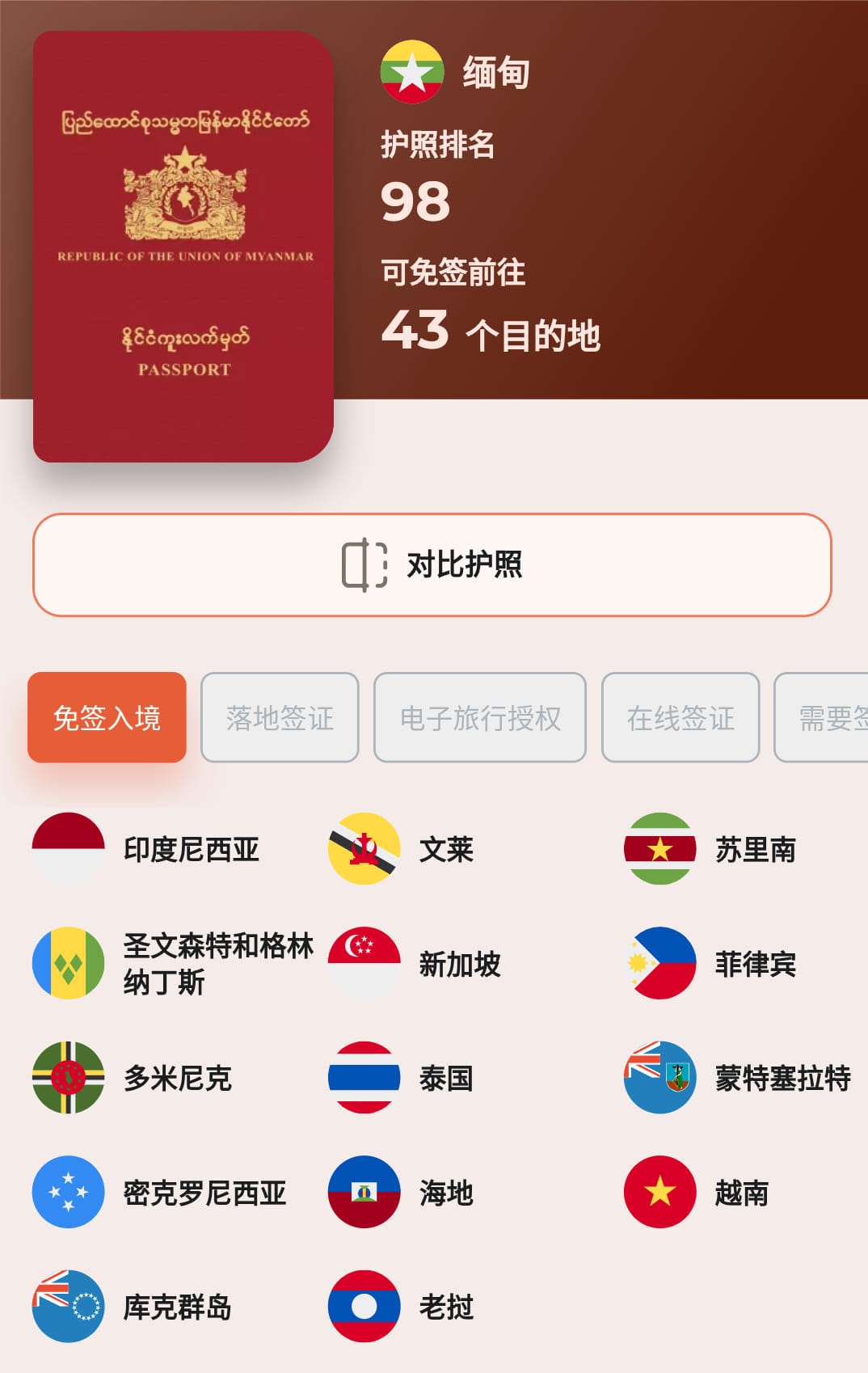 缅甸有很多华人华侨,也是黄种人国家,所以比持有非洲护照让人更可信,在国内外使用的信任度更好。
